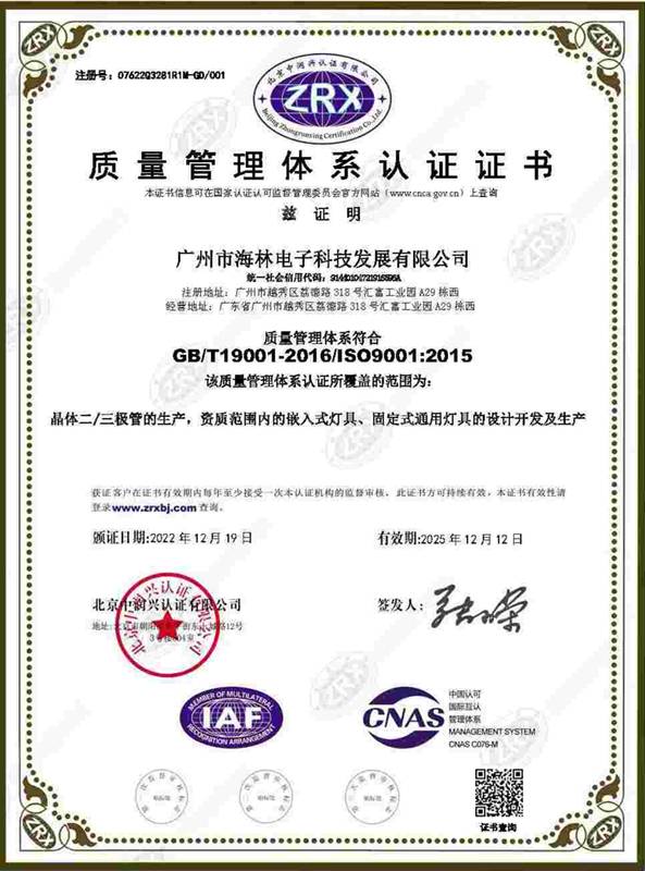 質(zhì)量管理體系證書