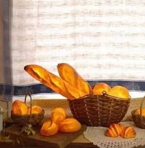 28歲的日本設(shè)計(jì)師森田優(yōu)希子在前不久的“2015東京設(shè)計(jì)師周”展示了LED面包燈,名為“Pampshades”,這個(gè)名字由“pan”和“l(fā)ampshade”構(gòu)成,前者來(lái)自于拉丁語(yǔ)中的“panem”,在法語(yǔ)中意為面包,后者意為“燈罩”。面包燈采用的面包也用面粉、鹽和酵母制成,內(nèi)置LED燈,表面覆蓋一層特殊的塑料涂層,保持面包的結(jié)構(gòu)和外觀,同時(shí)防止面包腐爛而破壞里面的LED燈。制作的面包燈大小形狀不一,其中包括法國(guó)棍子面包燈和新月形面包燈。
