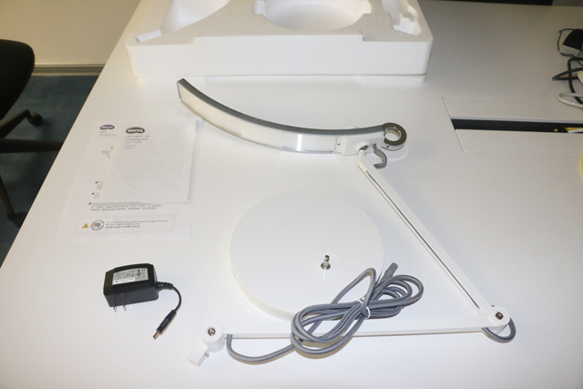 WiT護眼燈包裝拆解:外層郵包紙盒→內(nèi)層產(chǎn)品包裝紙盒→泡沫包裝盒→部件塑料薄膜,層層保護,最后得到產(chǎn)品三個部件、說明書和便捷指南。
