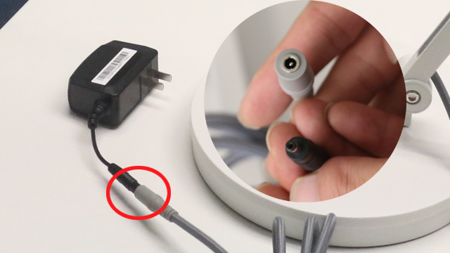 不要忘了把電源插頭與燈臂上的電源線連起來,這樣才能接通電源,雖然18W并不是一個大功率,但是由無線供電技術來實現(xiàn)還是比較難的。