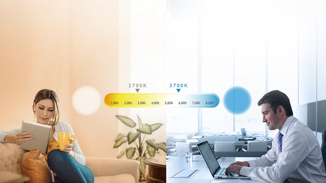 通過旋轉WiT的飛梭旋鈕,用戶可以手動調(diào)節(jié)燈光亮度和冷、暖色溫。開燈的情況下順時針可以提高亮度,逆時針則會降低亮度。此時按一下飛梭旋鈕可切換到色溫調(diào)節(jié)模式:順時針旋轉可以提高色溫(光線偏白色),逆時針旋轉可以降低色溫(光線偏黃色),色溫調(diào)整范圍為2700K~5700K。