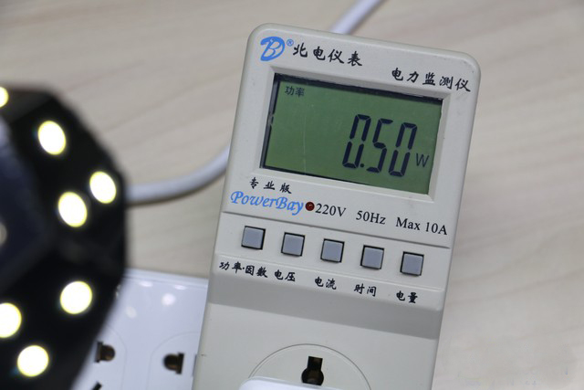下面主要針對綠諾款LED燈泡及臺燈組合套裝的功率進行測試,看看它們在亮度最高、夜光模式以及關閉狀態(tài)下功率分別是多少。