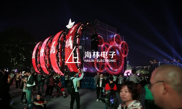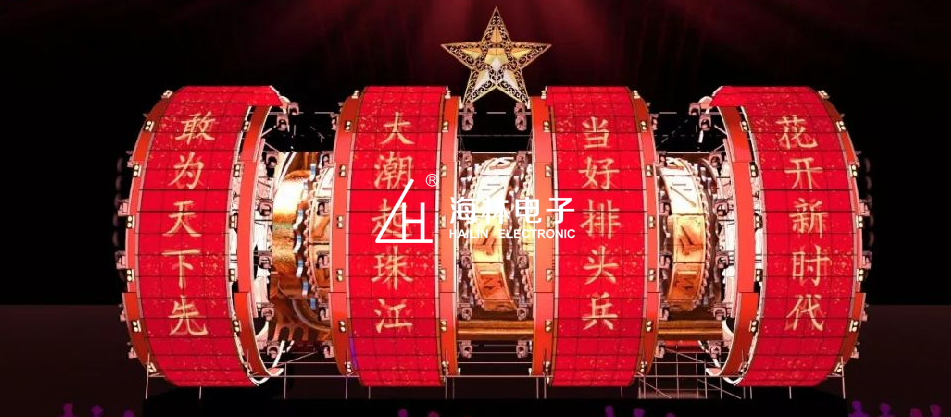 由五塊LED屏幕組成,用巨輪造型進(jìn)行銜接,寓意在改革開發(fā)40周年的環(huán)境下,廣州始終緊貼時(shí)代脈搏,在時(shí)代發(fā)展的潮流中發(fā)展,在歷史前進(jìn)的邏輯中前進(jìn),時(shí)代的力量讓羊城始終走在改革開放的浪尖,并持續(xù)綻放廣州的時(shí)代光彩。