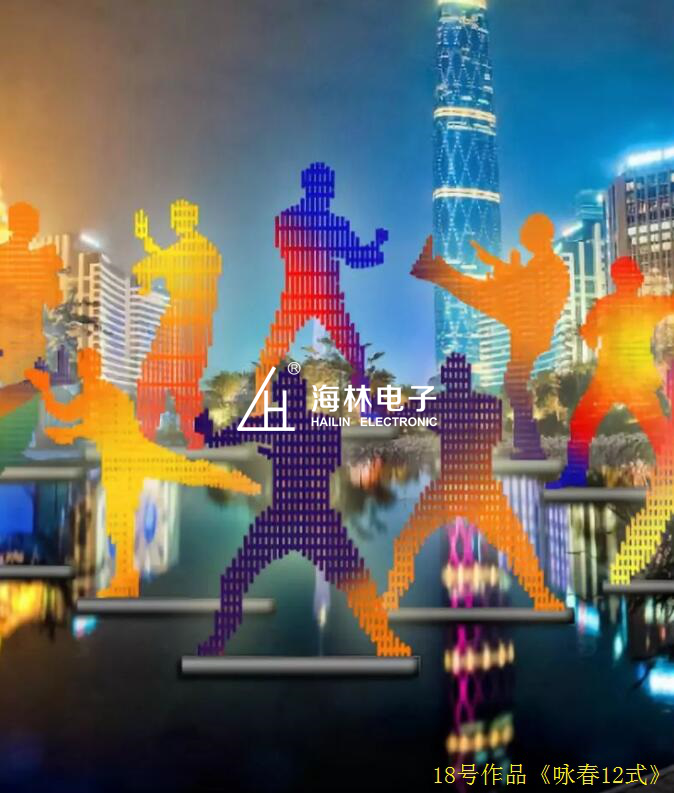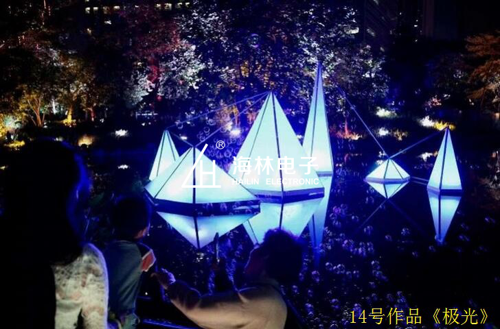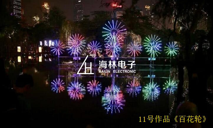 在花城廣場(chǎng)北區(qū)是高校組作品的集中地,共放置了8組作品:11號(hào)作品《百花輪》、12號(hào)作品《花城花開》、13號(hào)作品《懸燈結(jié)彩》、14號(hào)作品《極光》、15號(hào)作品《Firework煙花》、16號(hào)作品《暖光》、17號(hào)作品《羊城之美.心傳》以及18號(hào)作品《詠春12式》。